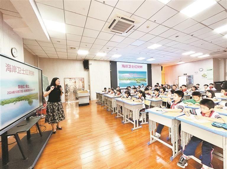 李裕红老师以生动有趣的讲述,带领小记者认识了“海岸卫士”——红树林。小记者通过讲座了解了红树植物的分布情况、三大生存本领以及红树林对生态环境的巨大价值,也知道了红树林正面临全球性面积减少和功能性衰退的境遇。大家纷纷表示,将用实际行动为保护家乡的红树林贡献自己的力量。