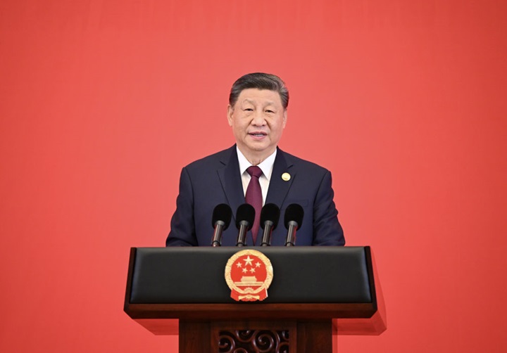 习近平发表致辞,代表中国政府和中国人民对来华出席第九届亚洲冬季运动会开幕式的国际贵宾表示热烈欢迎。