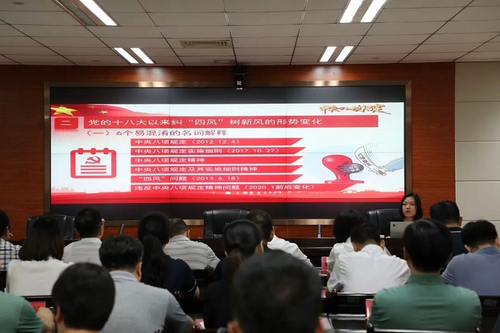 会议邀请泉州市纪委监委“刺桐清风”宣讲团成员,驻市发改委纪检监察组杜筱玫同志,以《打通纠“四风”树新风的“最后一公里”》为题,并结合实际案例,为全体党员干部上了一堂纠“四风”树新风警示教育课。