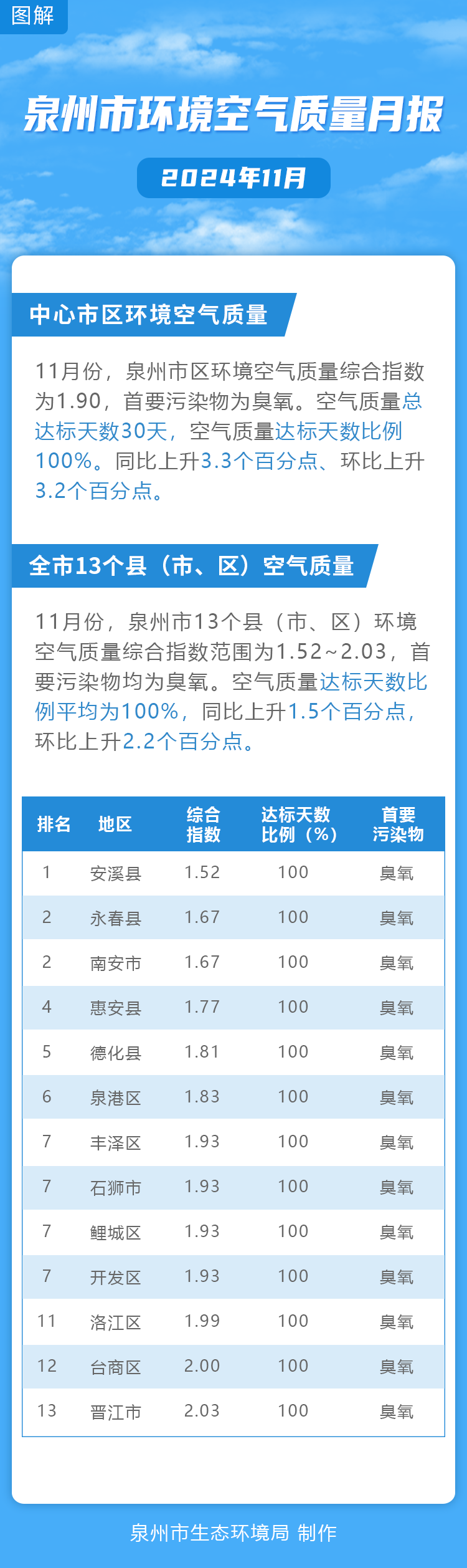 图解 | 泉州市环境空气质量月报(2024年11月)
