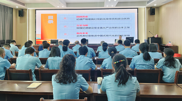 党组成员、副局长郭建华到德化生态环境局给全体党员干部授以《回顾历史,立足当前,面向未来,推进党纪学习教育走深走实》为题的党纪学习教育专题党课。